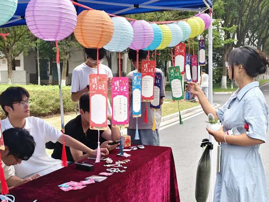 “心灵扭扭棒”区域充满了创意与童趣。五彩斑斓的扭扭棒在同学们手中弯曲、缠绕,被巧妙地塑造成各种形态。来自现场的一名新生分享道:“我用扭扭棒做了一朵花,代表我此刻既平静又充满希望的心情。”这个过程让无形的情绪通过指尖创作变得可视、可触,成为一种独特的情绪表达与释放。