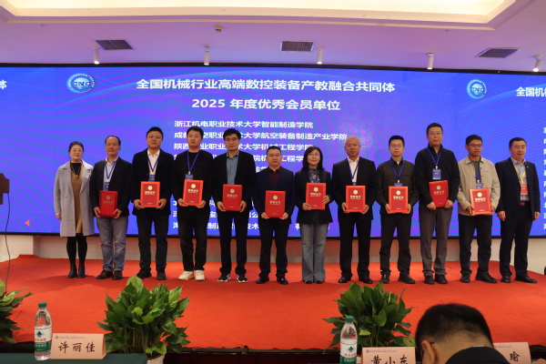 10月24日上午,年会正式拉开帷幕。会议由高宏彦主持。首先,许丽佳副校长代表共同体年会承办单位成都航空职业技术大学致辞;黄小东处长发表讲话,指出应通过深化校企合作内涵、创新协同运行机制有效推进现代职业教育体系建设改革;共同体执行秘书长浙江正方科学研究评价中心朱国锋主任汇报2025年共同体年度工作报告及2026年工作计划。随后,共同体发布《2025全国机械行业高端数控装备行业发展分析报告》和《2025年机械行业数控装备领域人才分析与需求预测报告》,对2025年度优秀会员单位、优秀会员代表、优秀联络员进行表彰,并为《精雕数字化制造软件JD SurfMill认证考试点》授牌,进一步激发共同体成员单位的参与热情与合作动力。