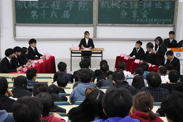 为锻炼同学们的表达能力与临场反应能力,丰富同学们的课外生活,2020年11月15日晚上七点,机械工程学院团总支学生会学习部于乐群楼303教室举办了第十六届“机械之锋”辩论赛分享会。