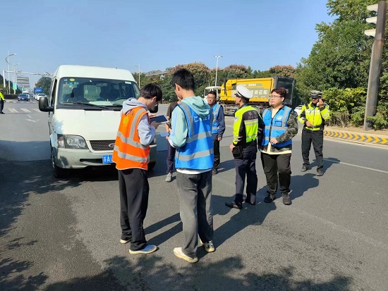 图3:机电师生团队配合南京交警开展车辆尾气检测实测