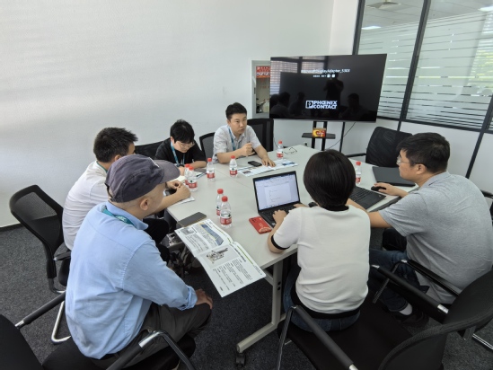 会议结束后,张辉主任与骨干教师们共同调研学习了下学期即将在菲尼克斯开展的实训课程,其中包括课程标准,教学计划、实训场地,实训设备,实训整体流程等,确保下学期学生们在企业实训课程能够顺利开展,也为双方合作走深走实提供有力支撑。