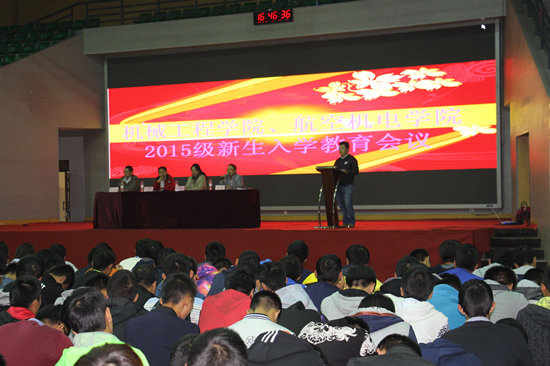 10月28日晚,机械工程学院、航空机电学院在体育馆召开了新生入学教育大会。学院党总支书记邓利民、院长王晓勇、副院长王红军、党总支副书记黄杰、辅导员、班主任及2015级全体新生参加了大会。大会由孙军伟老师主持。