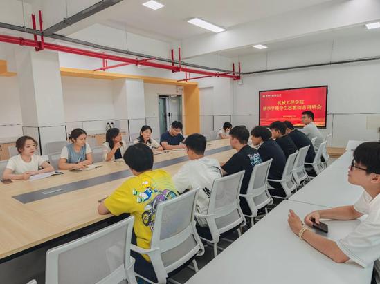 为了能够把握秋季学期学生思想动态,精准回应学生成长需求,筑牢育人工作根基,9月4日下午,机械工程学院在“一站式”学生社区党建活动室召开秋季学期学生思想动态调研会,学院党委书记刘英慧,党委副书记、副院长赵颖,辅导员黄雅杰、陆婷婷、何宇欣、吴婷婷、刘璠及来自各年级各专业的28名学生代表参加了会议,会议由赵颖主持。