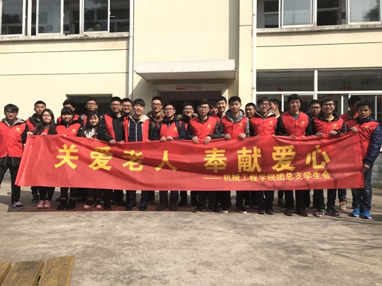 为呼吁更多的青年大学生敬老爱老,为老年人能够感受到社会大家庭的温暖,为增加同学们参与社会实践的经验、增强其社会服务意识及社会责任感。机械学院团总支学生会于2月25日,在秦淮区晨光复护理中心举办了“雷锋月敬老院之行”活动。活动前期,机械学院团总支、学生会在各团支部展开广泛宣传,获得了同学们积极地响应,有300余人踊跃报名参加了我们此次的敬老院之行。最终选取了30余名学生作为代表前往敬老院。在秦淮区晨光复护理中心,同学们分工明确,给予了老人们最全面、最舒心的照顾。孟子说:老吾老以及人之老。这就要求我们不仅要尊敬自己的老人,还要尊敬社会上所有的老人。在敬老院之行中,同学们在老人的笑容中感受到欣慰,而这些笑容是对同学们积极践行雷锋精神最好的鼓励和肯定,它让同学们知道帮助别人的意义与幸福感。
