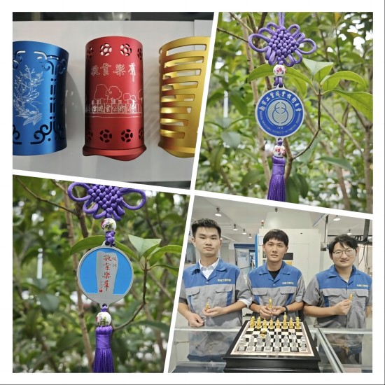 随后对2023年暑假专业实践进行了总结。假期专业实践是现场工程师人才培养中实践的关键环节。暑假开始,机械设计制造及自动化系有10名同学在开云官方端网站登录入口精雕学院进行了专业实习,他们分布在机械制造及自动化、机械设计与制造、模具设计与制造等专业。实践期间,学校和企业指导老师共同制定了实习计划,将实习同学分成两组:产品组和工艺品组。产品组的同学,在工程师的指导下,参与航空零件的工艺制定、编程加工及检测。工艺品组的同学,在工程师的指导下,完成工艺品的构思、设计、工装设计、加工及不断优化。所有同学的作息时间完全和企业同步,每位同学都有企业的指导老师,有明确的岗位和分工。7月份的实践任务主要是产品数控加工工艺研发、产品试制加工和工艺品开发。学生主要参与的企业项目有:封闭涡轮、机匣、叶轮等。开发的工艺品有:具有中国特色的兵马俑国际象棋、笔筒、挂件、蛋雕等。